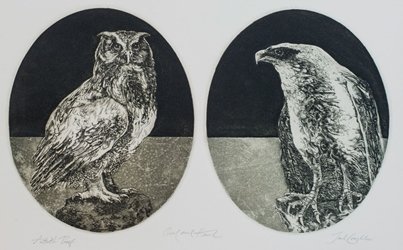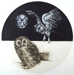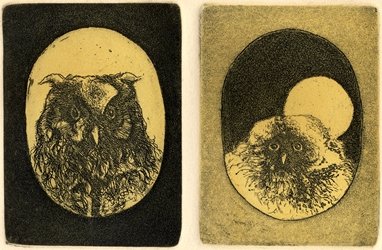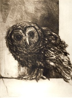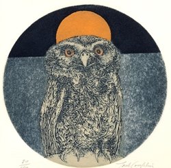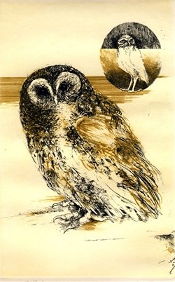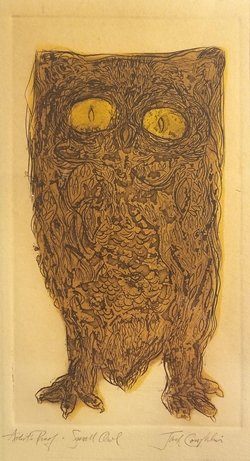 Small Owl Original color etching, signed and marked “Artist’s Proof”