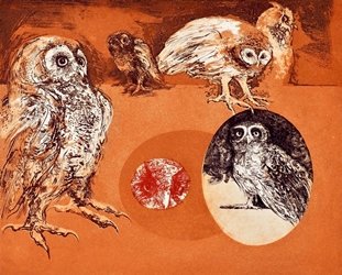 Study of Six Owls Original color etching Numbered 95/100 Print size 12-inches x 14 5/8-inches Catalog #128