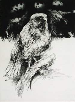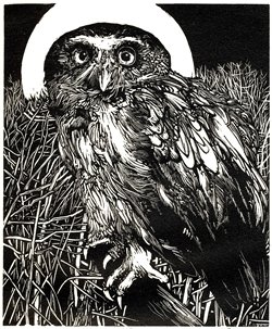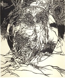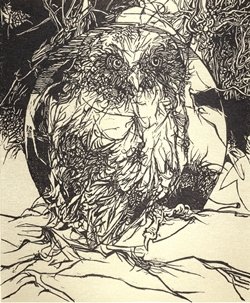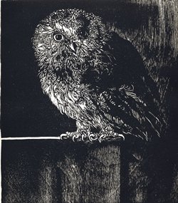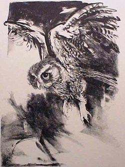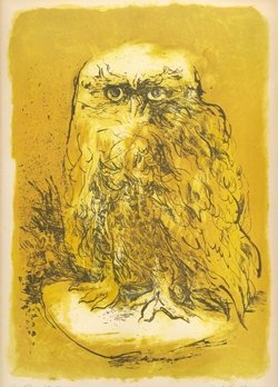 Owl Original Lithograph, signed and numbered 19/250 Print size: 8-inches x 11¼-inches. Sold through Associated American Artists [ original label in file ]
