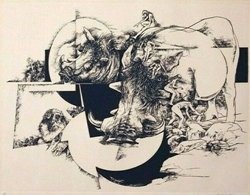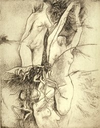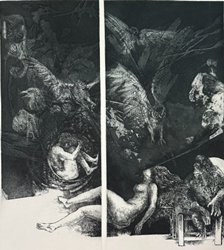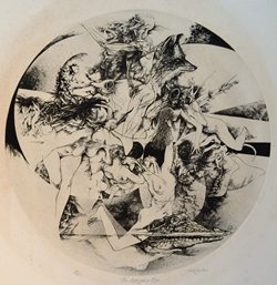 We have nine such prints in our collection. I am aware of at least five other prints of Jack’s that I would classify within this group of “dream” images. We also own several portrait prints where Jack uses this tool of entangled fantasy to fill the background with texture and detail.