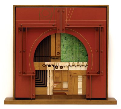 Assemblage is a technique that originated with Cubist collage and was first realized in sculpture by Picasso in 1912. This blend of sculpture and collage is highly suitable for the piano hammers and levers used in Krämer's Schumann illustrations. These modular wooden pieces, broken down and organized into groups, allow for a childlike, building-block playfulness in the creation of the works. Incorporated into the assemblages are sheets of foam-core board painted with acrylic using a dry-brush technique. These boards are cut and assembled with strong, visual, architectural elements; Romanesque portals are integrated into the master design of the vertical-horizontal axis. Underlying the forms, techniques, and designs of Krämer's works is the influence of contemporary assemblage artist Abe Ajay. Ajay explored variations of portal designs using painted boards and sculptured blocks. The portal designs in these pieces were also influenced by the shapes and style developed by Sir Joseph Paxton for his 1851 Crystal Palace in London. In keeping with Schumann's cohesive musical vignettes, common elements are used to achieve a similar unity across the assemblages. Consistency in color, size, material, and master design is maintained, with only slight variations to allow for individual characteristics. |
