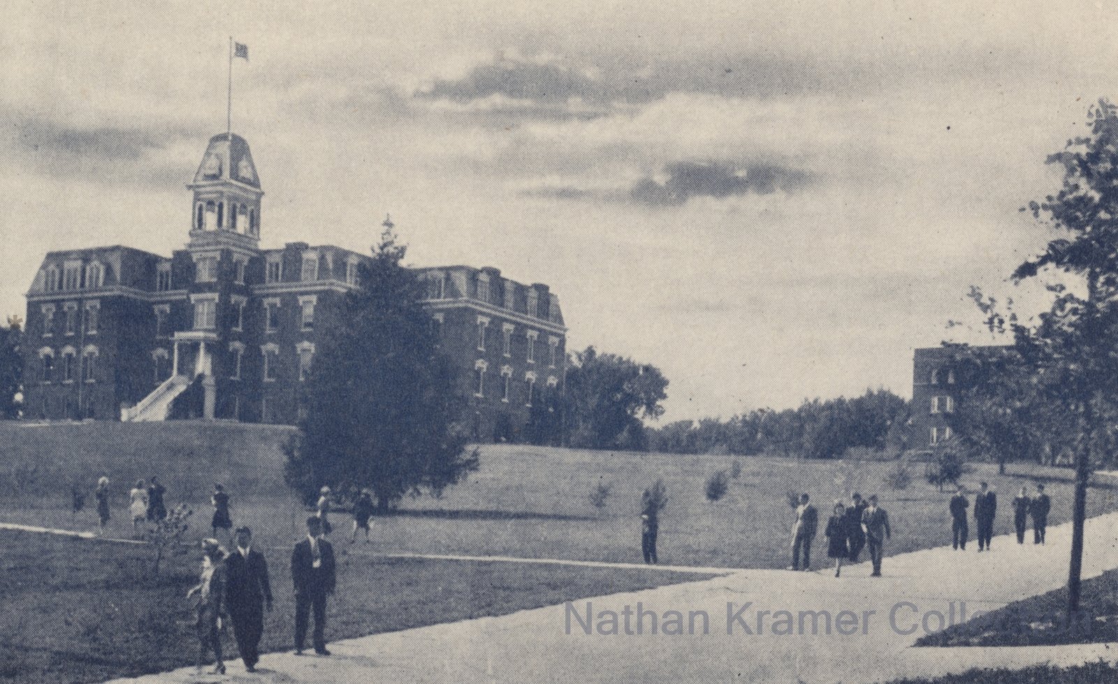 Old Main with students on walkway